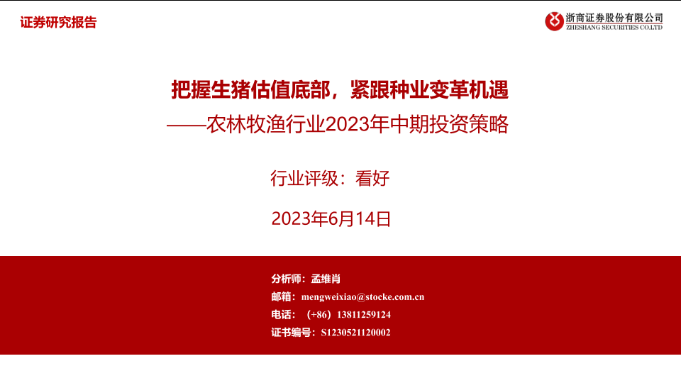 【浙商证券】【20230614】农林牧渔行业2023年中期投资策略:把握生猪估值底部,紧跟种业变革机遇-62页