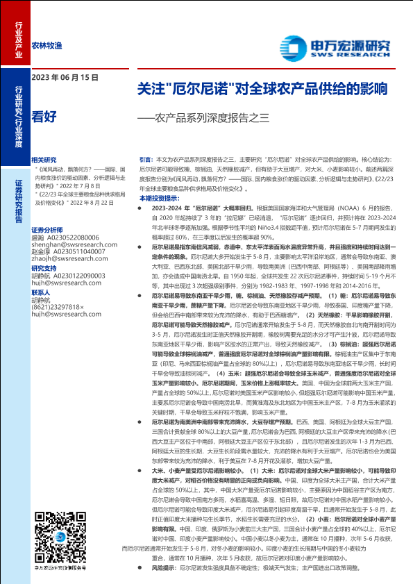 【申万宏源】【20230615】农林牧渔行业农产品系列深度报告之三:关注“厄尔尼诺“对全球农产品供给的影响-29页