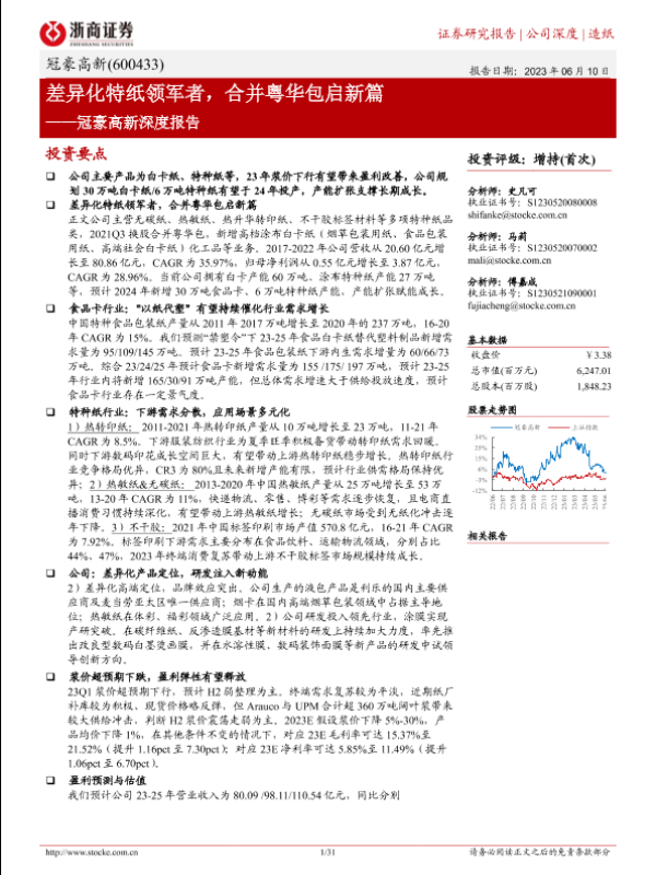 【浙商证券】【20230610】冠豪高新深度报告:差异化特纸领军者,合并粤华包启新篇-31页