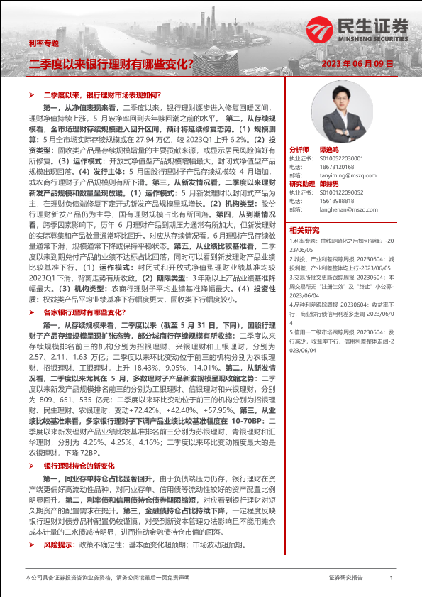 【民生证券】【20230609】二季度以来银行理财有哪些变化?-24页
