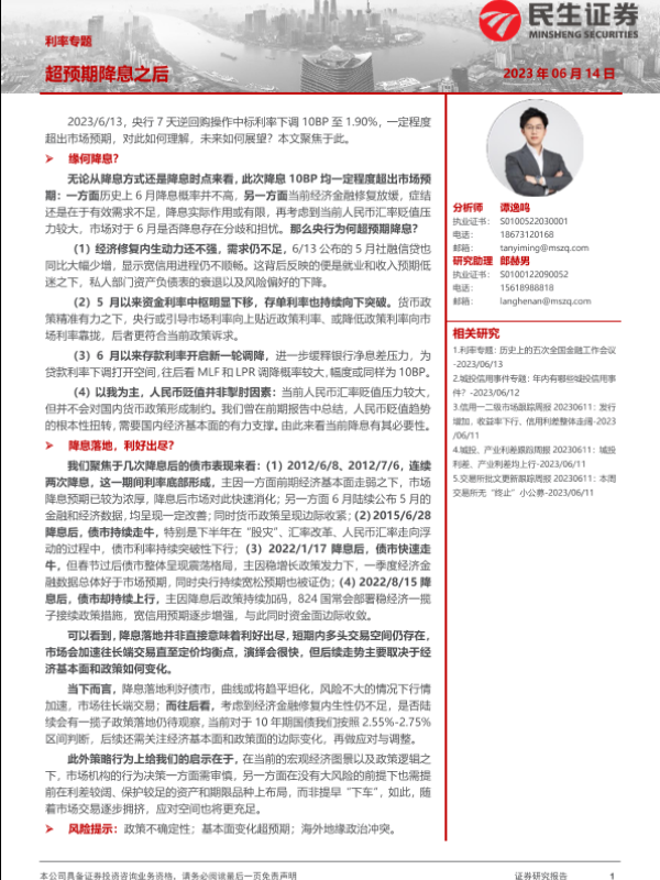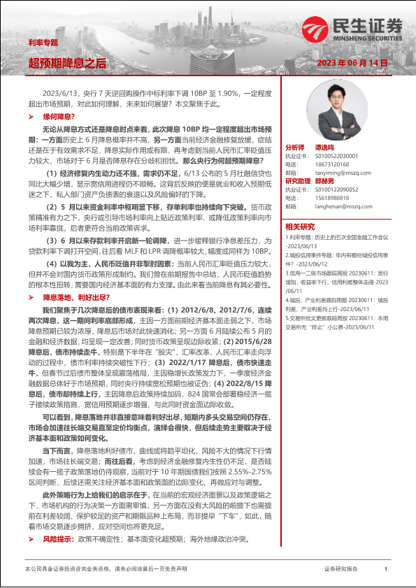 【民生证券】【20230614】利率专题:超预期降息之后-16页