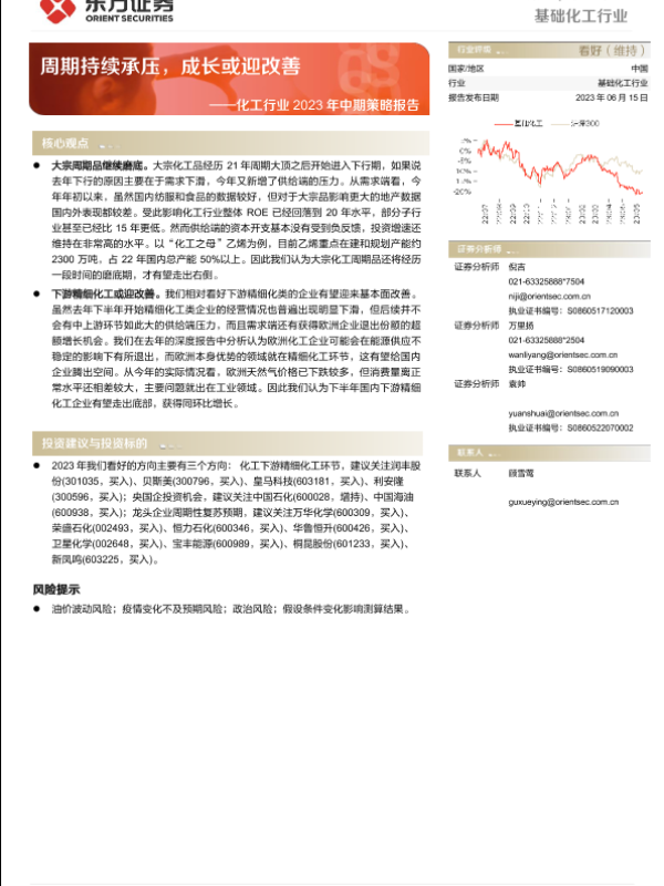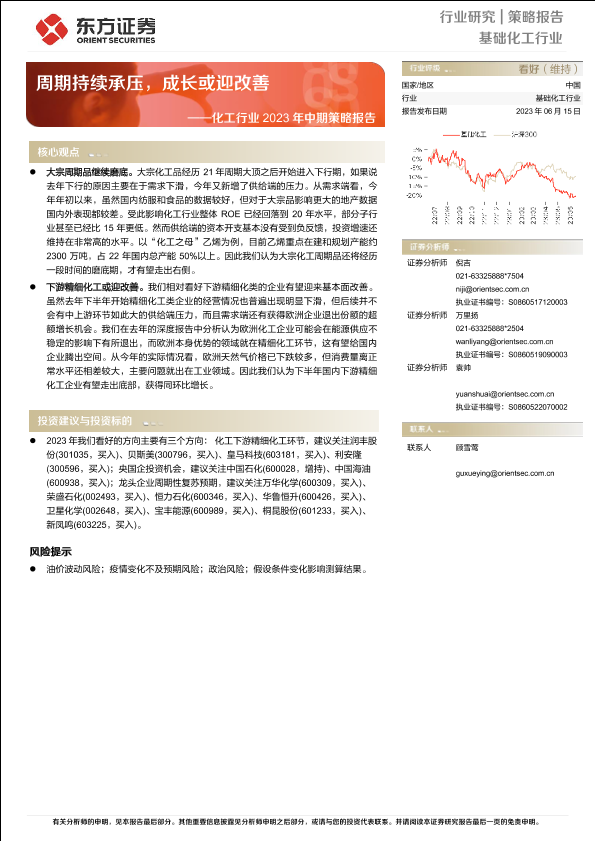 【东方证券】【20230615】化工行业2023年中期策略报告:周期持续承压,成长或迎改善-34页