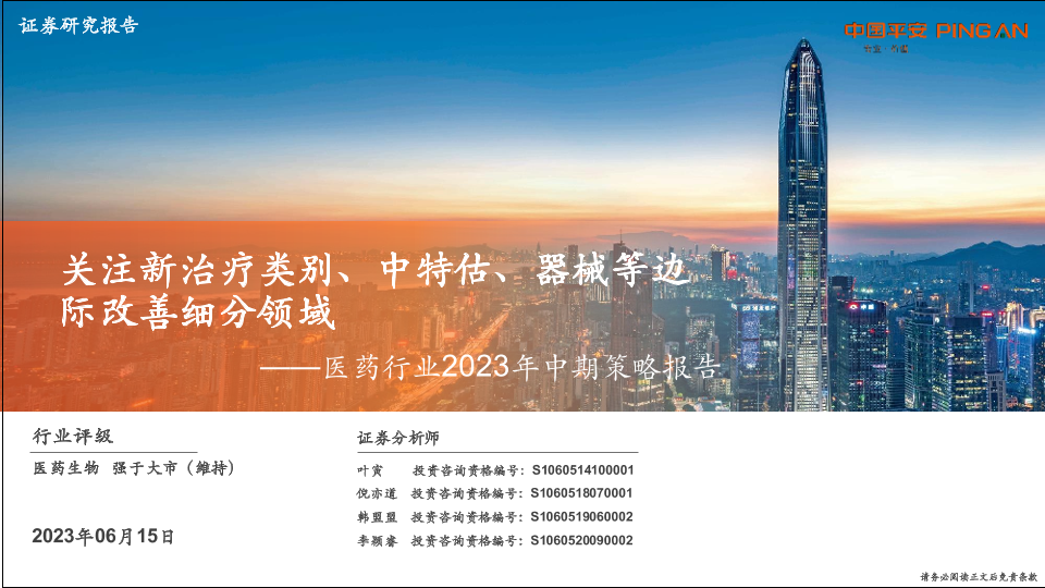 【平安证券】【20230615】医药行业2023年中期策略报告:关注新治疗类别、中特估、器械等边际改善细分领域-77页