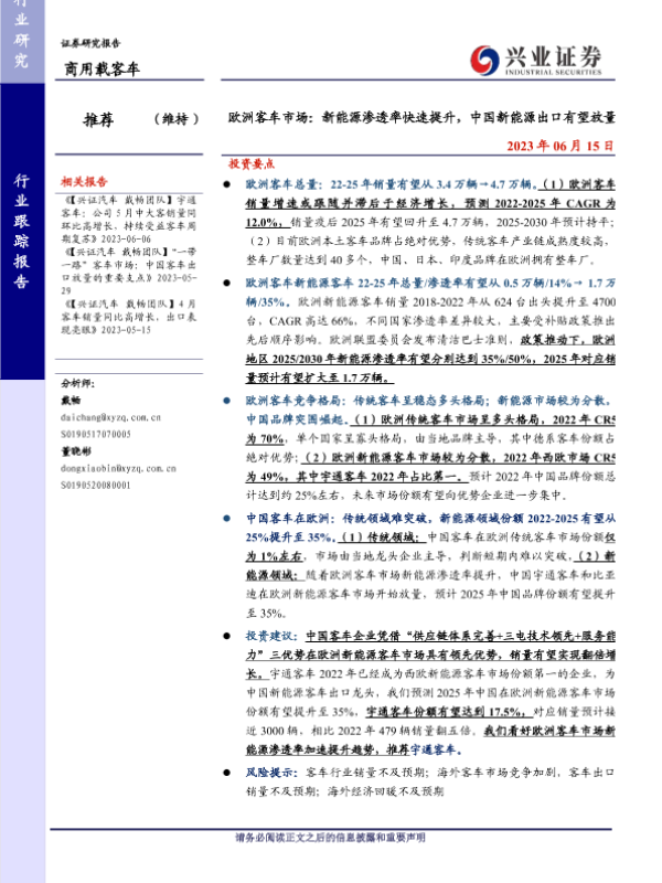 【兴业证券】【20230615】商用载客车行业欧洲客车市场:新能源渗透率快速提升,中国新能源出口有望放量-17页