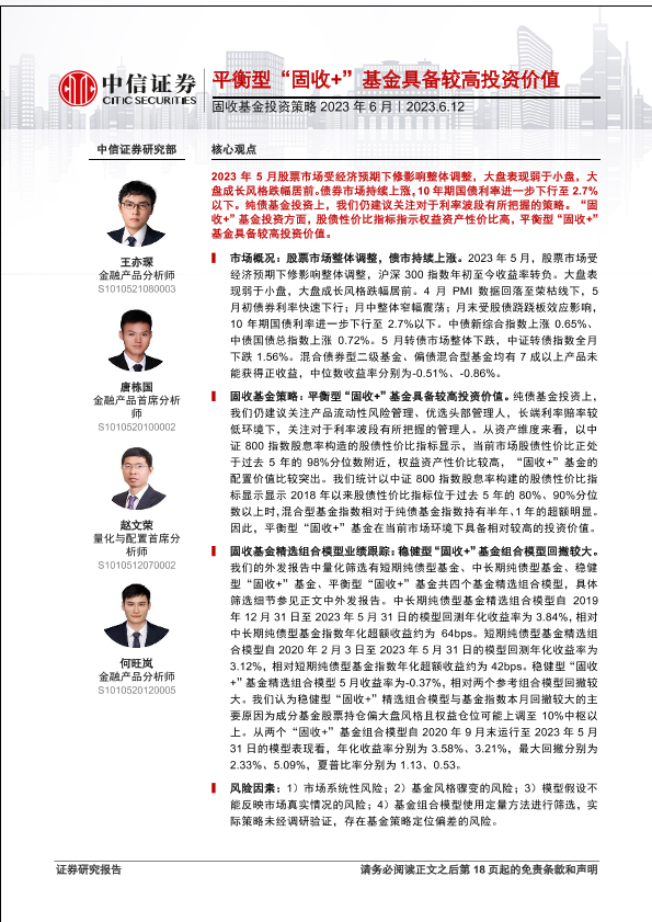 【中信证券】【20230612】固收基金投资策略2023年6月:平衡型“固收+”基金具备较高投资价值-19页