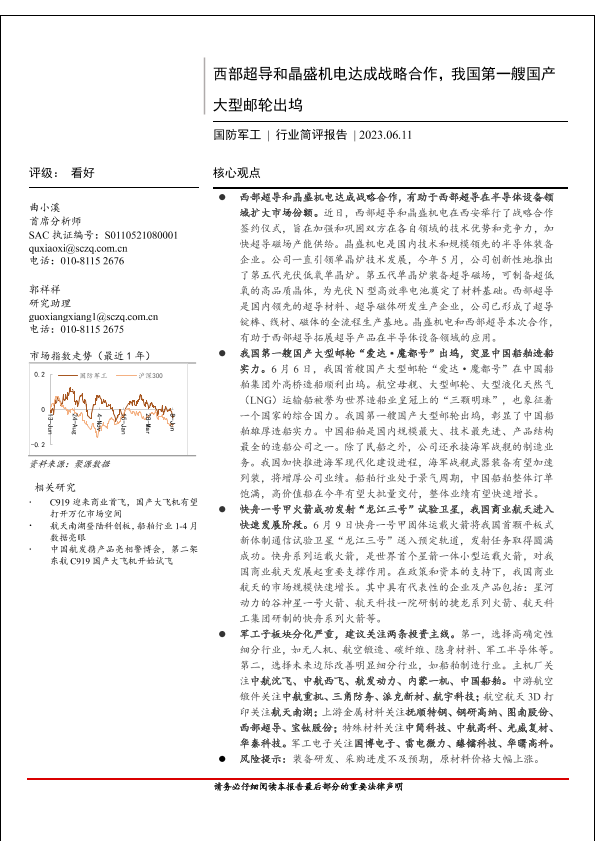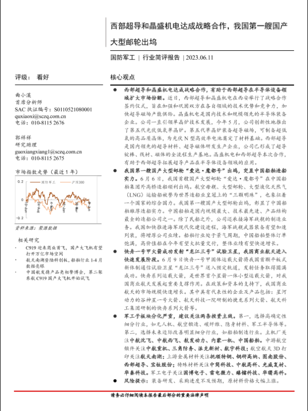 【首创证券】【20230611】国防军工行业简评报告:西部超导和晶盛机电达成战略合作,我国第一艘国产大型邮轮出坞-19页