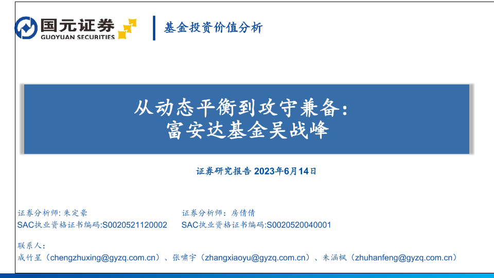 动态平衡 吴战峰 国元证券 攻守兼备 基金投资