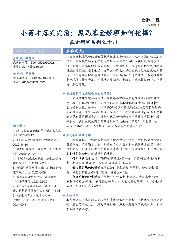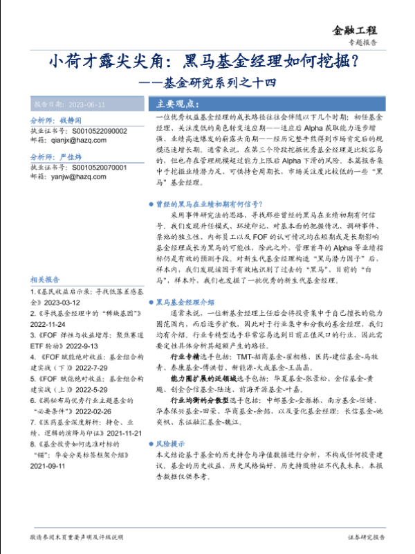 【华安证券】【20230611】小荷才露尖尖角:黑马基金经理如何挖掘?-31页