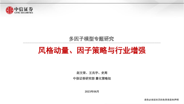 【中信证券】【20230614】多因子模型专题研究:风格动量、因子策略与行业增强-42页
