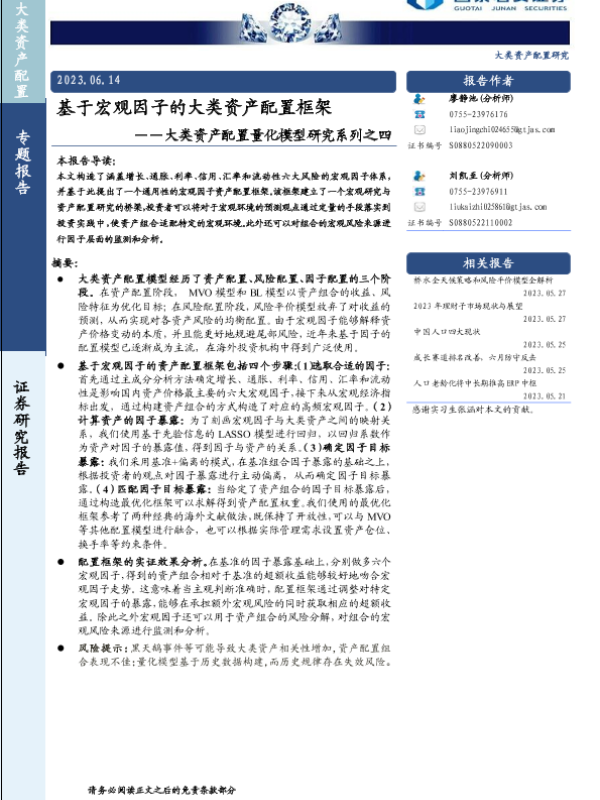 【国泰君安证券】【20230614】基于宏观因子的大类资产配置框架-38页