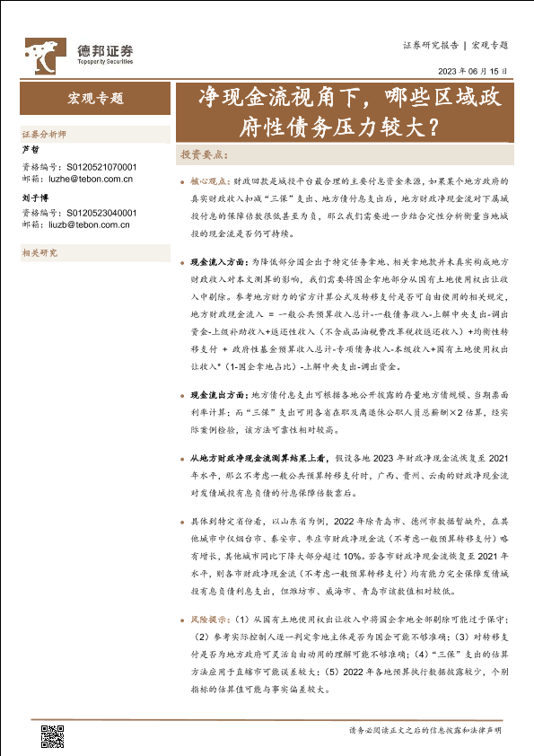 【德邦证券】【20230615】宏观专题:净现金流视角下,哪些区域政府性债务压力较大?-18页