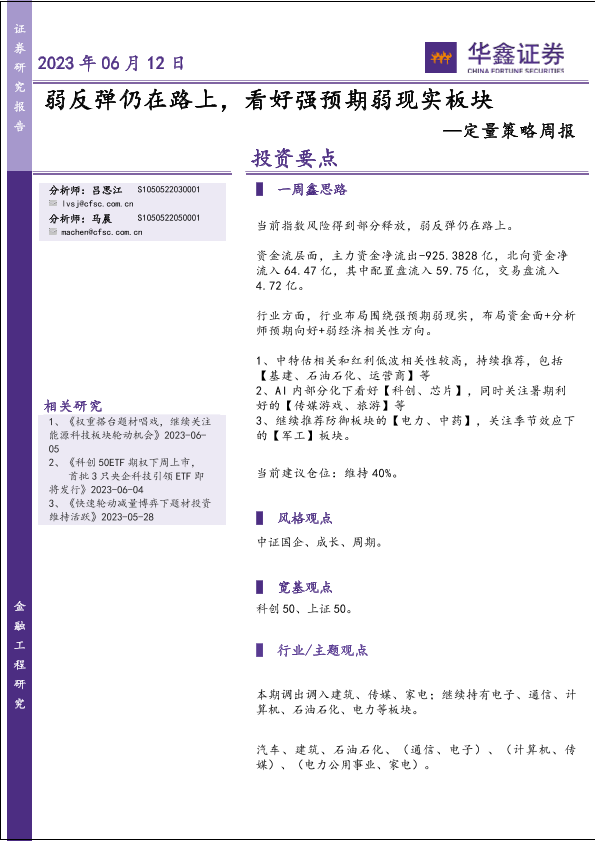 【华鑫证券】【20230612】定量策略周报:弱反弹仍在路上,看好强预期弱现实板块-21页