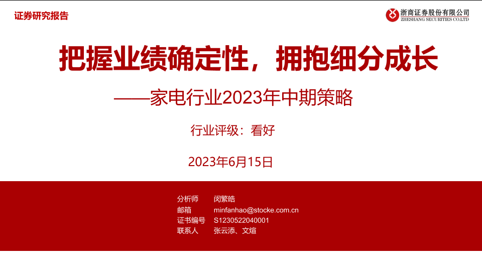 【浙商证券】【20230615】家电行业2023年中期策略:把握业绩确定性,拥抱细分成长-41页