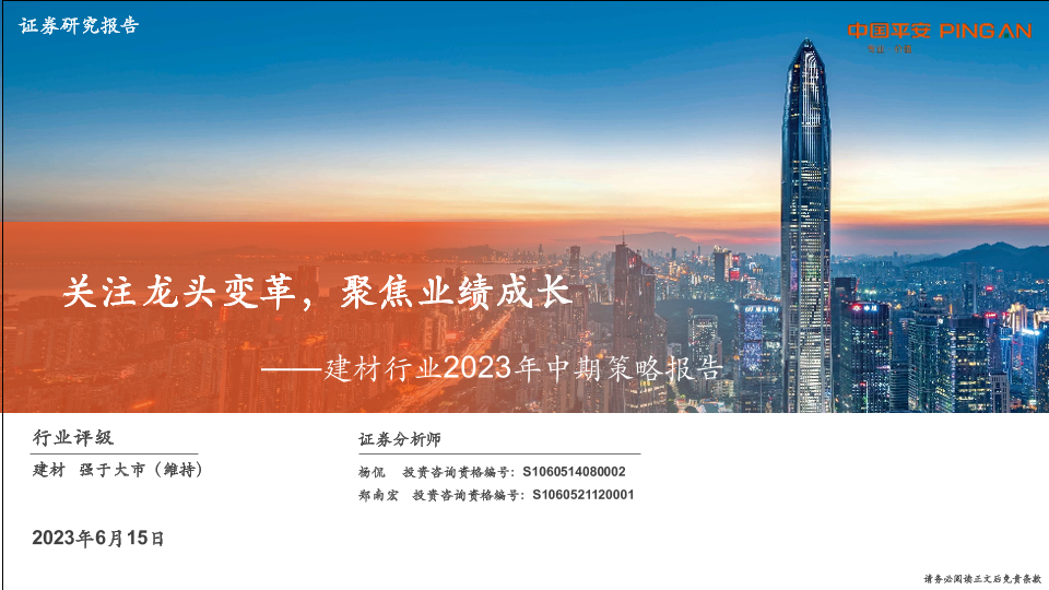 【平安证券】【20230615】建材行业2023年中期策略报告:关注龙头变革,聚焦业绩成长-35页