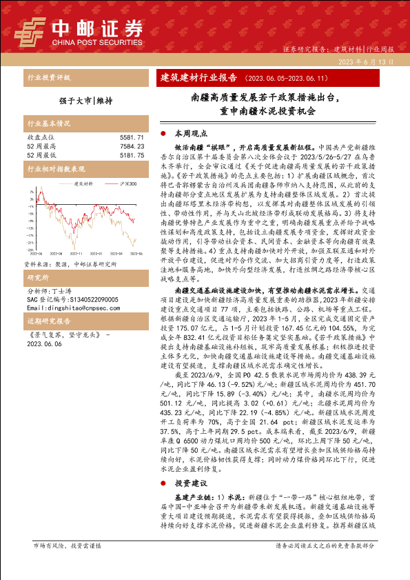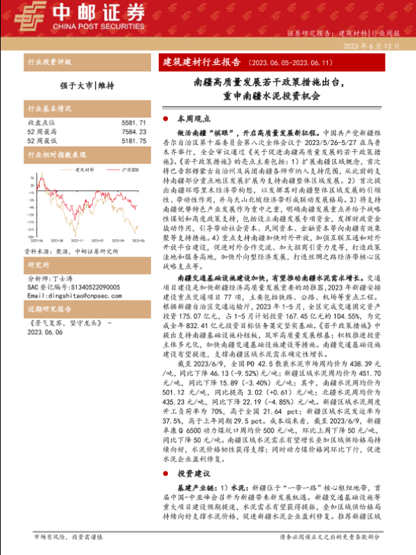 【中邮证券】【20230613】建筑建材行业报告:南疆高质量发展若干政策措施出台,重申南疆水泥投资机会-23页