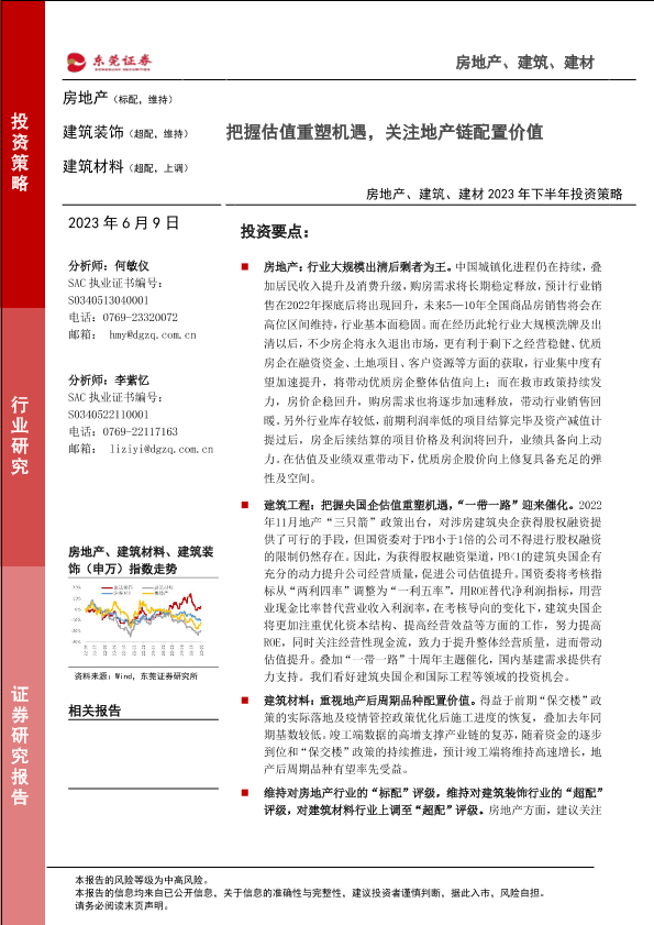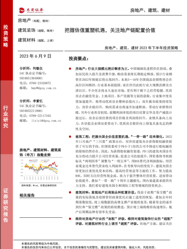 【东莞证券】【20230609】房地产、建筑、建材2023年下半年投资策略:把握估值重塑机遇,关注地产链配置价值-30页