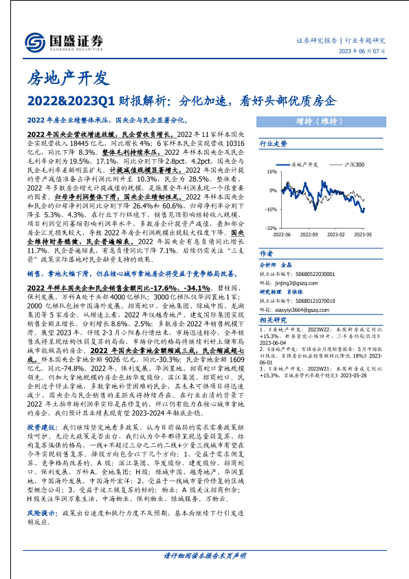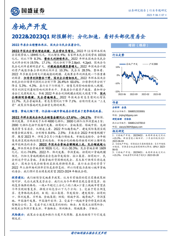 【国盛证券】【20230607】房地产开发行业2022&2023Q1财报解析:分化加速,看好头部优质房企-18页