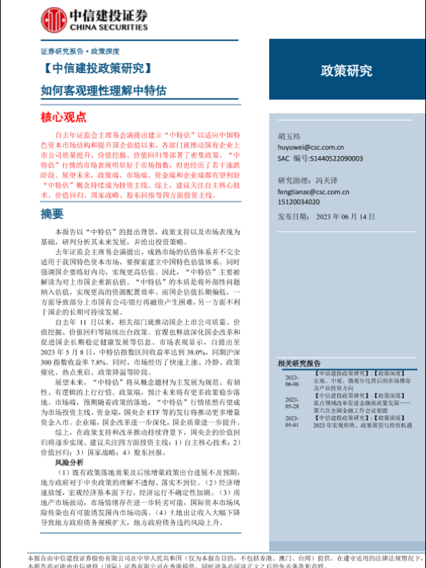 【中信建投证券】【20230614】政策研究:如何客观理性理解中特估-17页