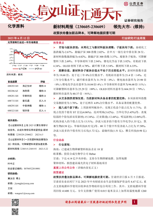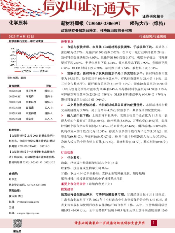 【山西证券】【20230612】新材料周报:政策扶持叠加新品降本,可降解地膜前景可期-26页