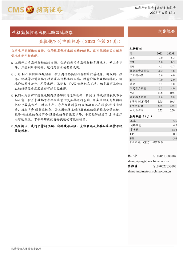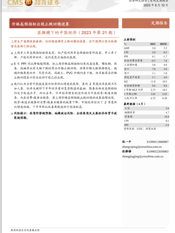 【海通证券】【20230612】显微镜下的中国经济(2023年第21期):价格高频指标出现止跌回稳迹象-35页