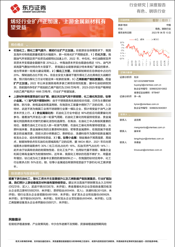 【东方证券】【20230613】有色、钢铁行业:烯烃行业扩产正加速,上游金属新材料有望受益-15页