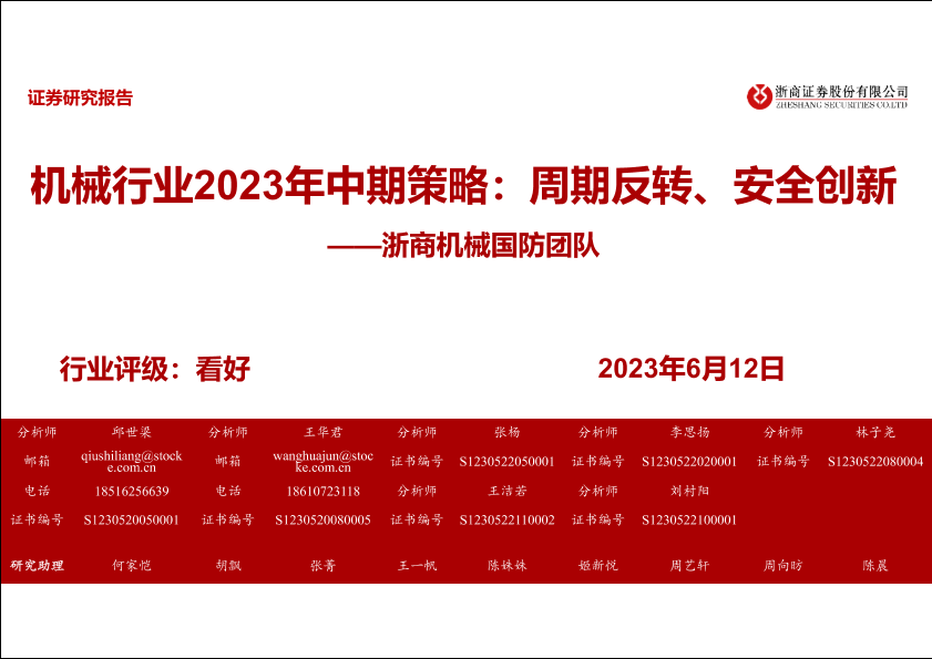 2023年中期策略 周期反转 安全创新 机械行业 浙商证券