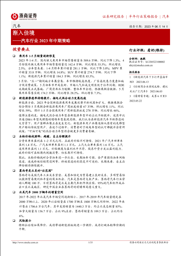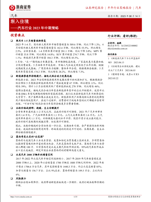 【浙商证券】【20230614】汽车行业2023年中期策略:渐入佳境-35页