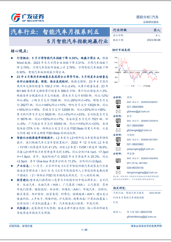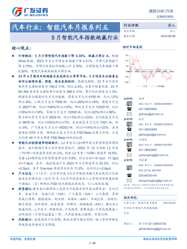 【广发证券】【20230608】汽车行业:智能汽车月报系列五5月智能汽车指数跑赢行业-23页