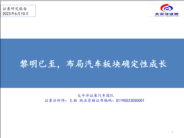 【太平洋证券】【20230610】汽车行业:黎明已至,布局汽车板块确定性成长-32页