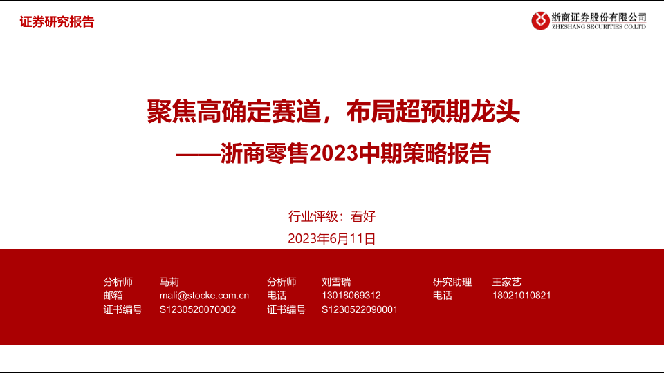 【浙商证券】【20230611】浙商零售2023中期策略报告:聚焦高确定赛道,布局超预期龙头-25页