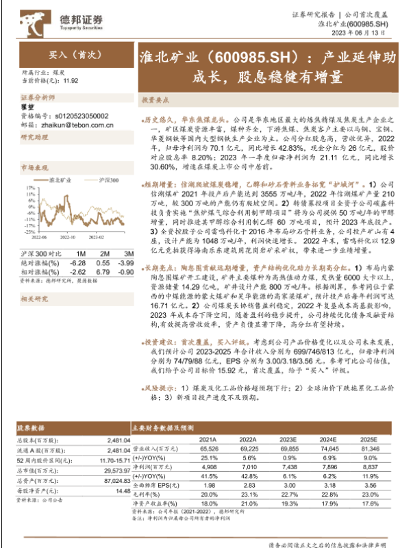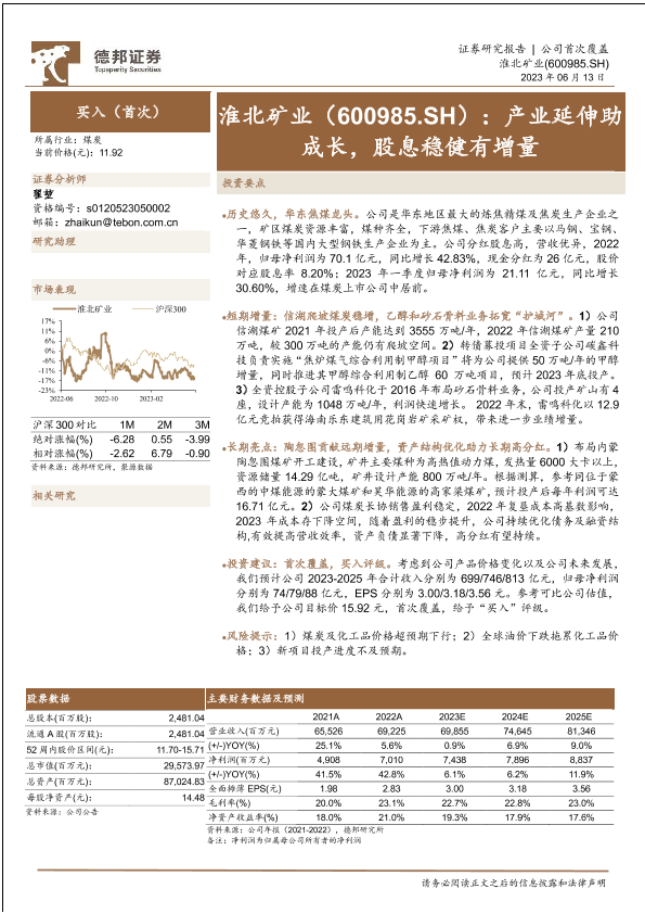 【德邦证券】【20230613】淮北矿业-600985.SH-产业延伸助成长,股息稳健有增量-17页
