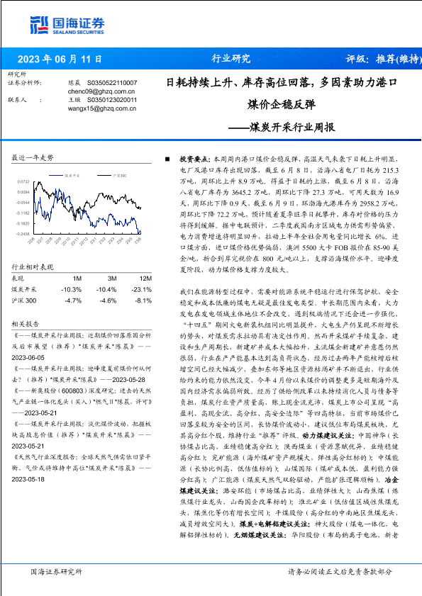 【国海证券】【20230611】煤炭开采行业周报:日耗持续上升、库存高位回落,多因素助力港口煤价企稳反弹-22页