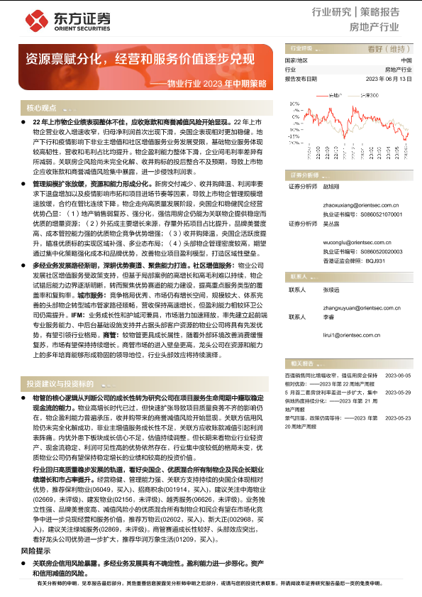 【东方证券】【20230613】物业行业2023年中期策略:资源禀赋分化,经营和服务价值逐步兑现-28页