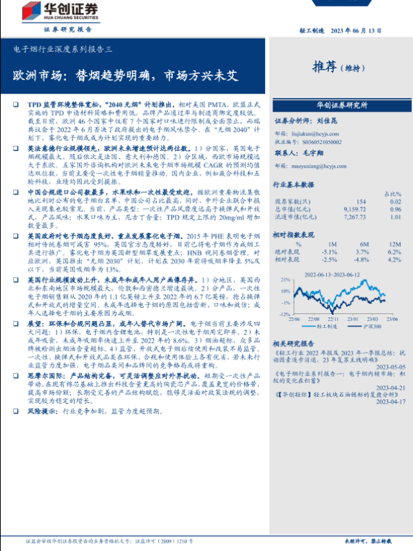 【华创证券】【20230613】电子烟行业深度系列报告三:欧洲市场:替烟趋势明确,市场方兴未艾-29页