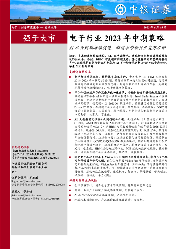 【中银证券】【20230615】电子行业2023年中期策略:AI从云到端持续演进,新需求带动行业复苏在即-40页