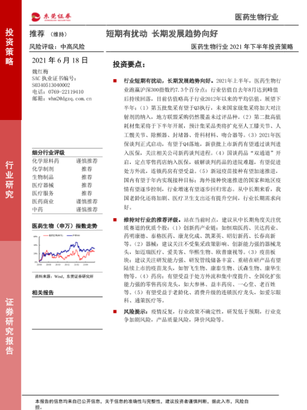 【东莞证券】【20210618】医药生物行业2021年下半年投资策略:短期有扰动,长期发展趋势向好-28页