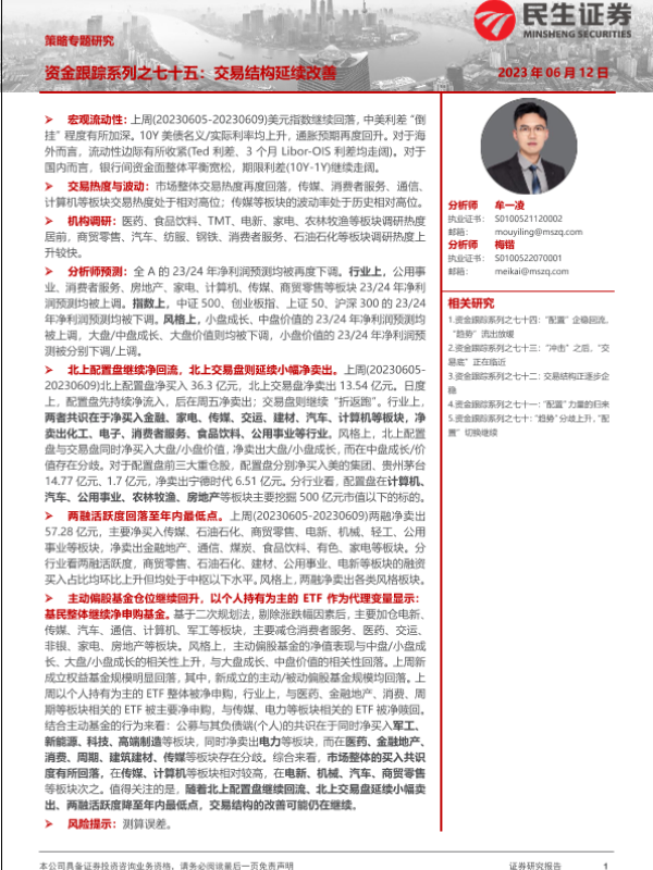 【民生证券】【20230612】策略专题研究:资金跟踪系列之七十五:交易结构延续改善-36页