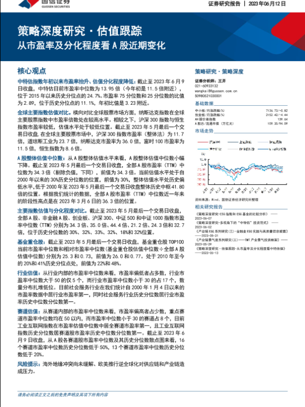 【国信证券】【20230612】策略深度研究·估值跟踪:从市盈率及分化程度看A股近期变化-47页