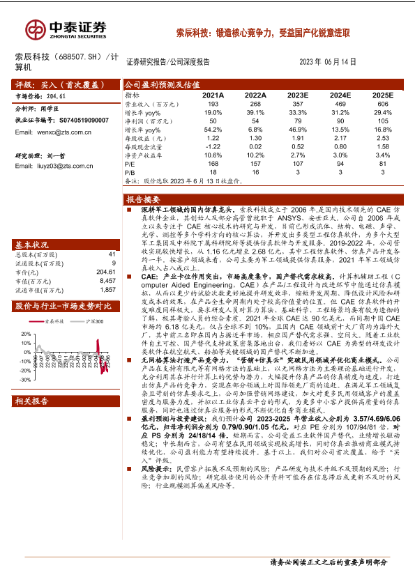 【中泰证券】【20230614】索辰科技(688507):锻造核心竞争力,受益国产化锐意进取-31页