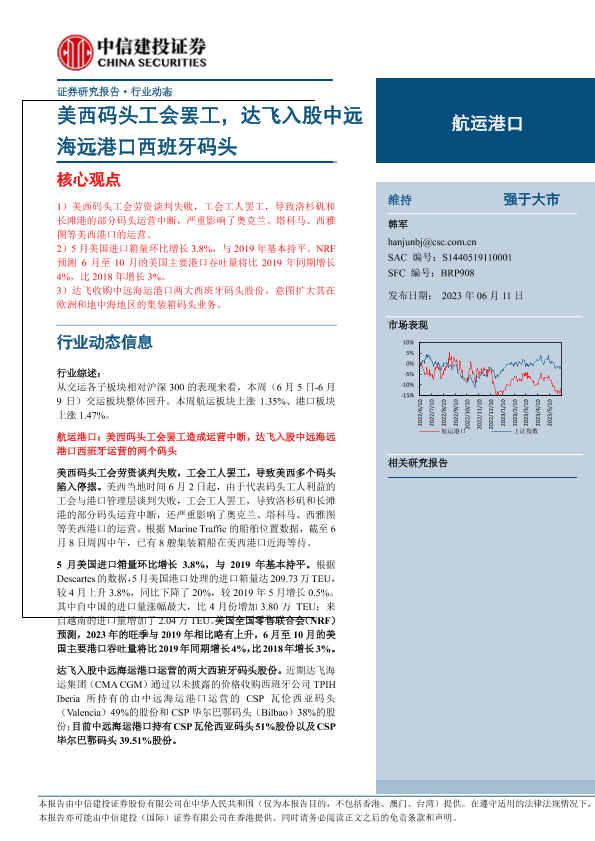【中信建投证券】【20230611】航运港口行业:美西码头工会罢工,达飞入股中远海远港口西班牙码头-26页