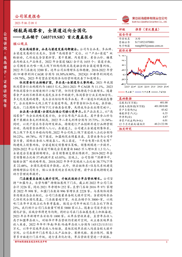 【东亚前海证券】【20230609】良品铺子首次覆盖报告:领航高端零食,全渠道迈向全国化-40页