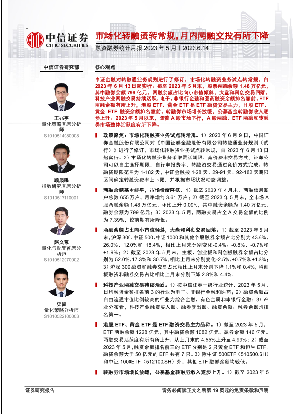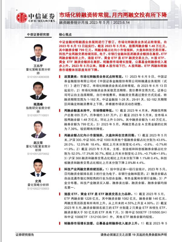 【中信证券】【20230614】融资融券统计月报2023年5月:市场化转融资转常规,月内两融交投有所下降-20页