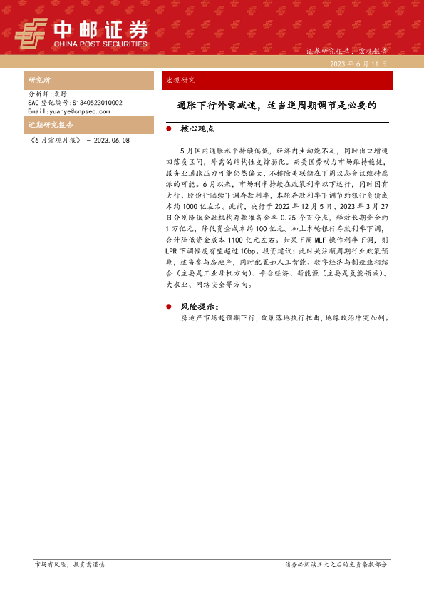 【中邮证券】【20230611】通胀下行外需减速,适当逆周期调节是必要的-21页