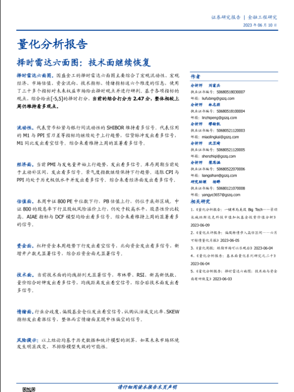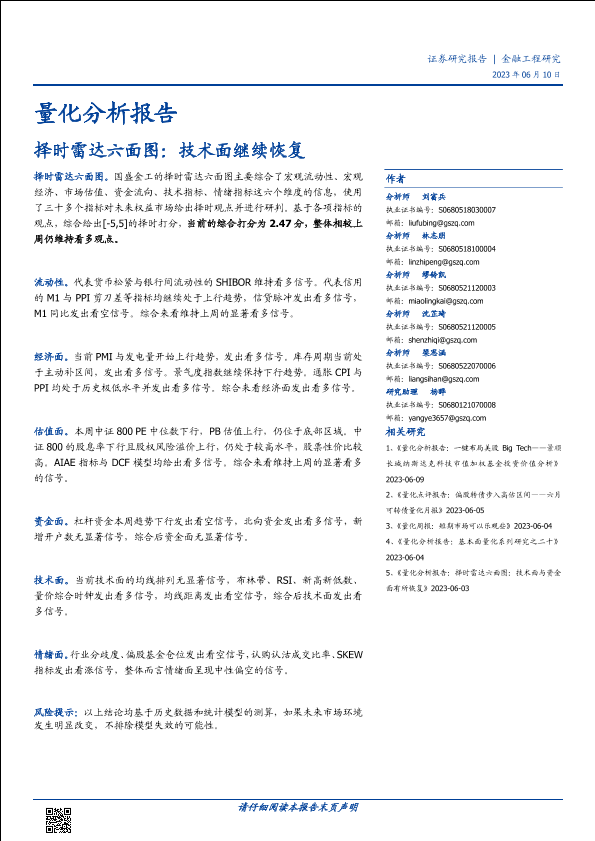 【国盛证券】【20230610】量化分析报告:择时雷达六面图,技术面继续恢复-23页