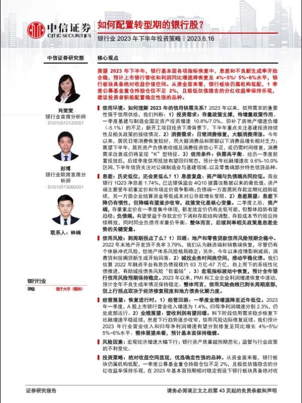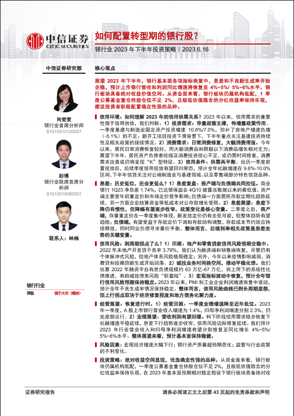 【中信证券】【20230616】银行业2023年下半年投资策略:如何配置转型期的银行股?-44页