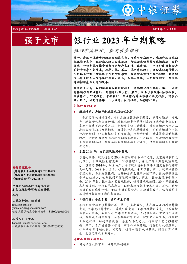 【中银证券】【20230613】银行业2023年中期策略:低赔率高胜率,坚定看多银行-23页