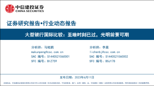 【中信建投证券】【20230611】银行业动态报告:大型银行国际比较,至暗时刻已过,光明前景可期-39页