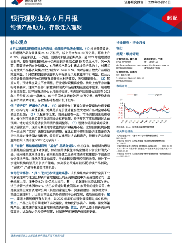 【国信证券】【20230616】银行业理财业务6月月报:纯债产品助力,存款迁入理财-17页