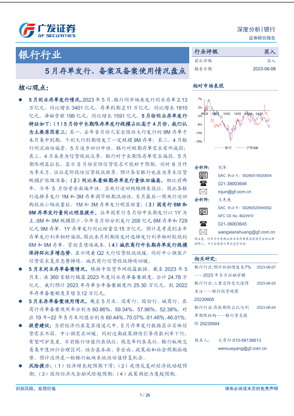 【广发证券】【20230608】银行行业深度分析:5月存单发行、备案及备案使用情况盘点-26页