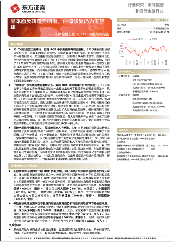 【东方证券】【20230615】非银金融行业2023年中期策略报告:基本面反转趋势明晰,估值修复仍为主旋律-32页